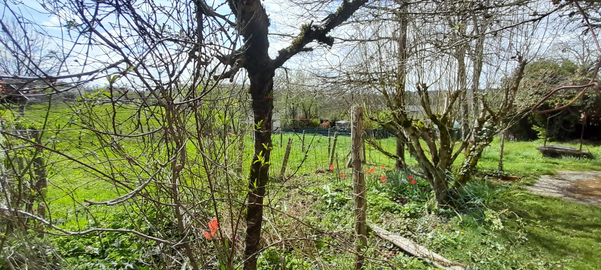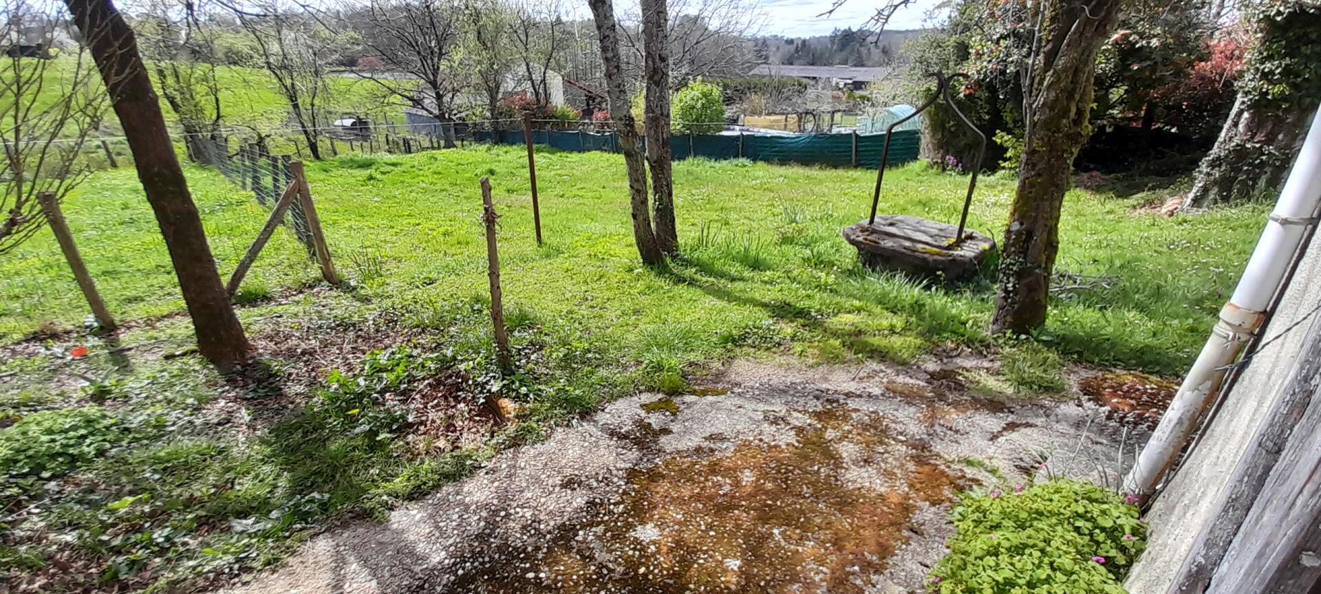 This property has immense potential offering main residence (living room,kitchen/dining room,4 bedrooms, bathroom,atticwithspace to renovate), and another part with a separate kitchen area, shower room and 2 more rooms. All on a plot of 1008 m² with a pleasant wooded garden, a welland nice views over the countryside. In addition is a separate garage with an attached workshop.