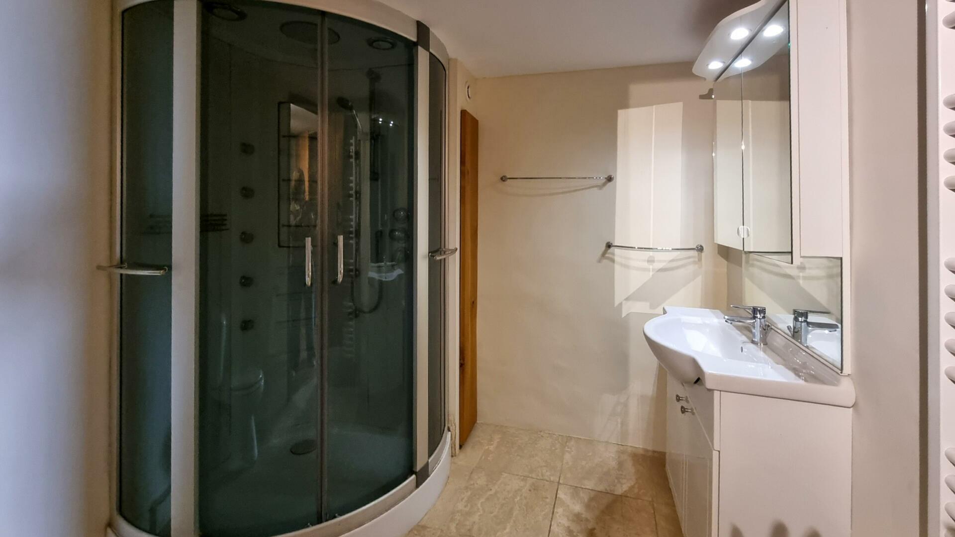 Upstairs, the accommodation is equally impressive. The outstanding master bedroom (31m²) offers a sense of calm and space, while the second bedroom (17m²) is ideal for guests or family. A family bathroom with both bath and shower is complemented by an additional shower room, making this floor highly practical for everyday living.