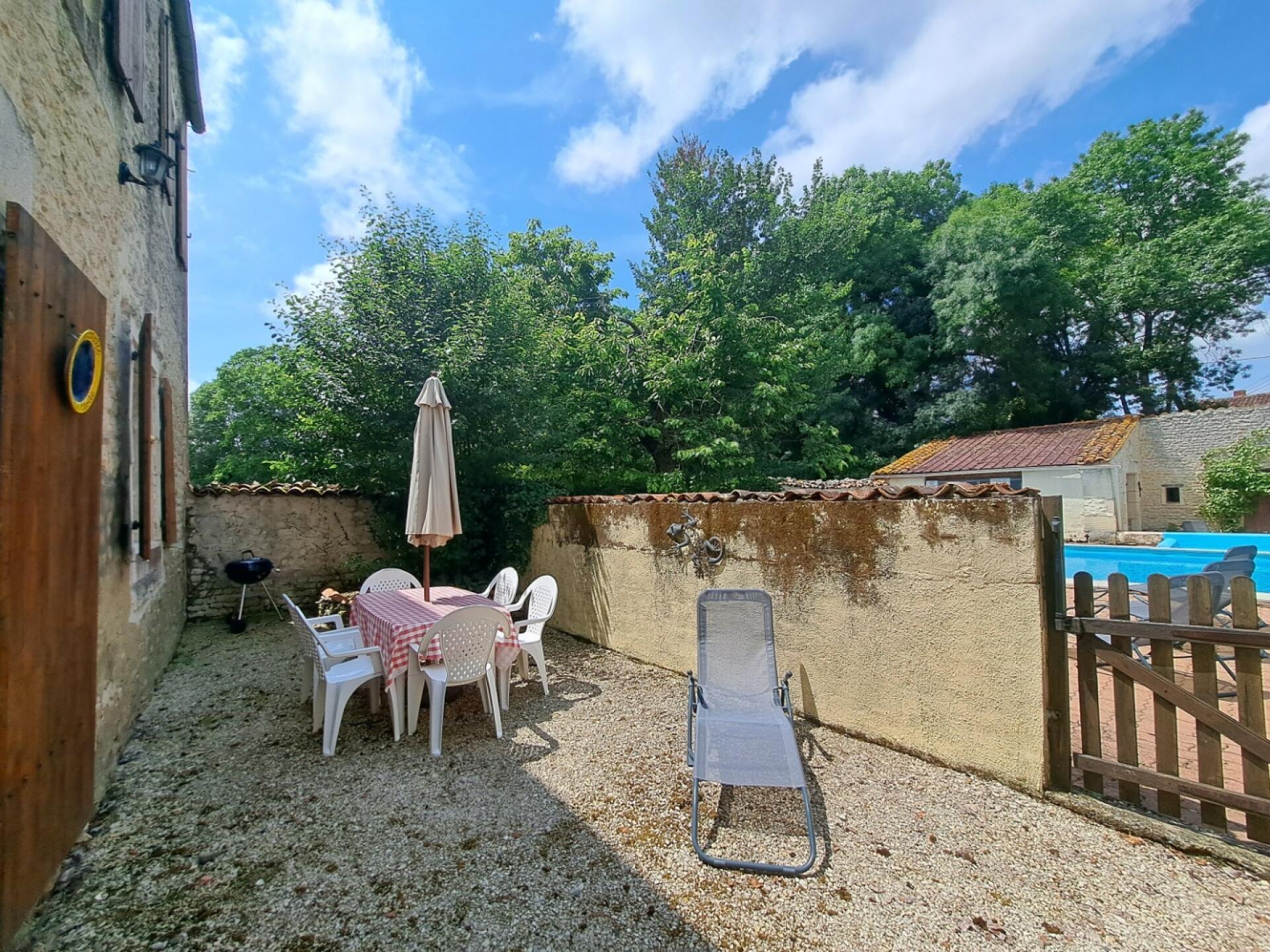 This single-story light filled home, would be ideal for someone with reduced mobility or a family, looking for a property to successfully manage as a seasonal rental. Situated on a generously sized plot with a private driveway, it offers excellent privacy from the holiday cottages. The south-facing covered terrace is a real sun trap during the many sunny days in this region, the second sunniest in France. In cooler weather, you’ll appreciate the comfort of the house, which is equipped with double glazing. There’s a fireplace which can be restored and fitted with a wood-burning stove. Two of the cottages overlook the swimming pool and the other two overlook the garden, each with its own private courtyard. A communal area is also available for guests, featuring a bread oven that’s much appreciated for baking pizzas on warm summer evenings! The large heated swimming pool (66 m²) with its jacuzzi is a major draw for both children and adults, thanks to its varying depth from 30 cm to 2 meters. The property is fenced and equipped with a security alarm, but some holidaymakers with young children choose to stay in the two cottages without direct access to the pool. Older children and adults enjoy the direct access from the two other houses and from the barn, which has been converted into a games room. The property is located in a small, quiet hamlet, 13 minutes from Saint-Jean-d’Angély, a charming historic town, and an hour from the coast and La Rochelle airport.Please note that the energy efficiency rating advertised relates only to the bungalow.