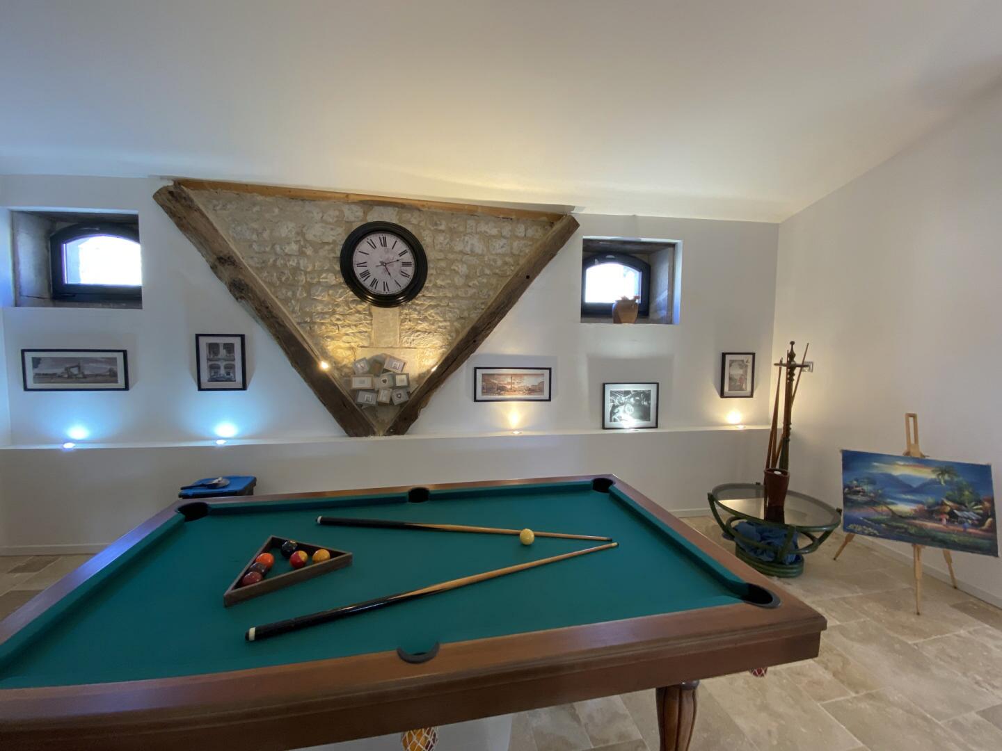 Sensational renovated property, located in the Charente Maritime countryside just 15 minutes from the historic town of Cognac. This luxurious home is distinguished by its spaciousness, elegance, and the quality of its finishes and comfort.Approached via a private driveway and accessed through gates, the main house welcomes you with an ample entrance hall, a spacious kitchen, bar area and billiard room, and main living room. The large reception rooms flow from one to the next. The main living room leads out to a terrace, perfect for enjoying al fresco dinners or relaxing with a view of the secluded pool and countryside beyond. On this floor, there is also a salon, a fitness room, a WC, a laundry and a room housing the original cognac still.